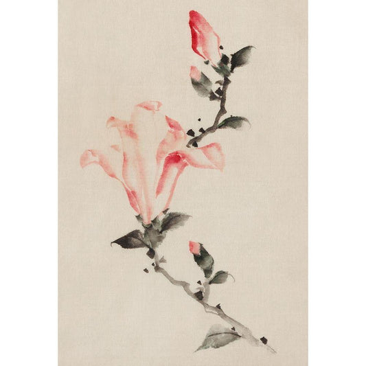 Large Pink Blossom on a Stem with Three Additional Buds Black Modern Wood Framed Art Print by Hokusai, Katsushika