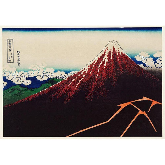 Sanka Hakuu Black Modern Wood Framed Art Print by Hokusai, Katsushika
