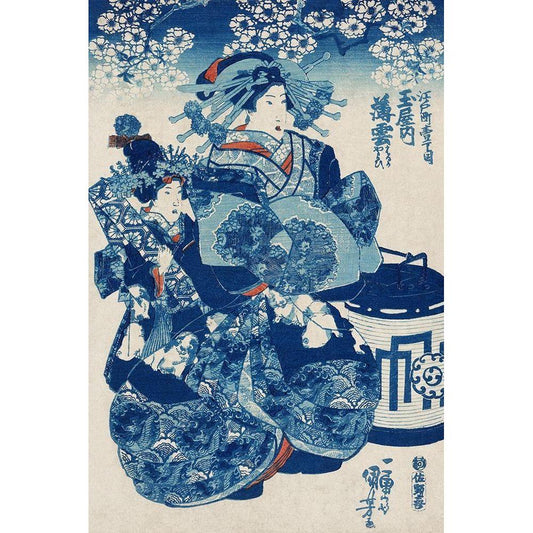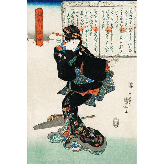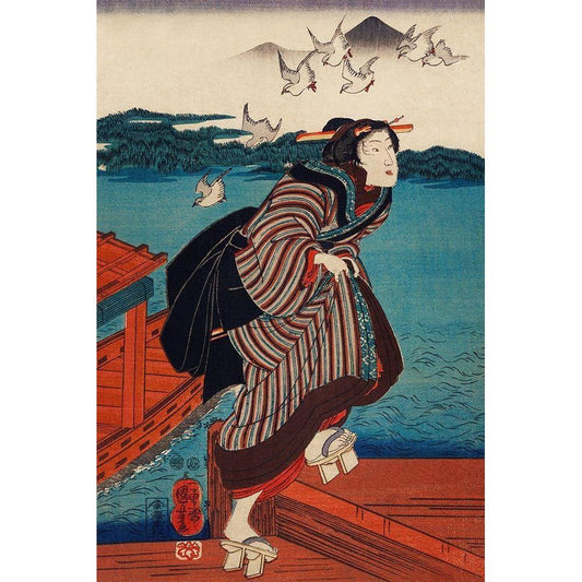 Sanbashi no Onna Black Modern Wood Framed Art Print by Kuniyoshi, Utagawa