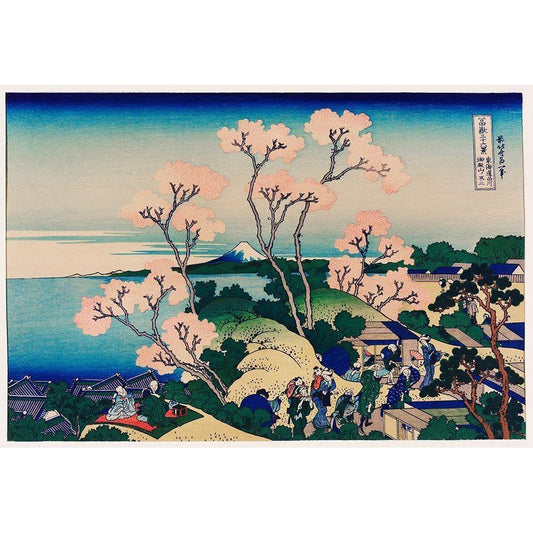 Goten-Yama Hill, Shinagawa on the Tokaido Black Modern Wood Framed Art Print by Hokusai, Katsushika