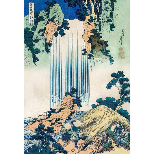 Yoro Waterfall in Mino Province Black Modern Wood Framed Art Print by Hokusai, Katsushika