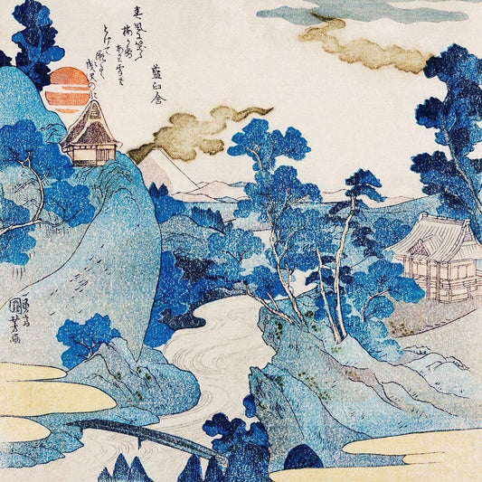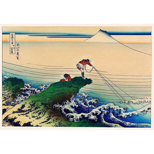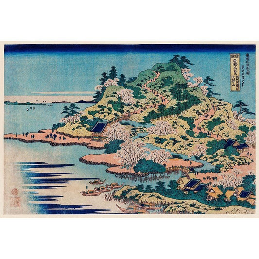 Sesshu Ajigawaguchi Tenposan Black Modern Wood Framed Art Print by Hokusai, Katsushika