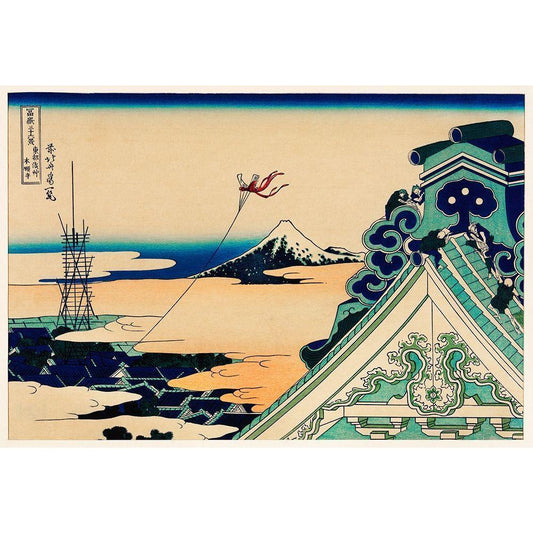 Toto Asakusa Honganji Black Modern Wood Framed Art Print by Hokusai, Katsushika