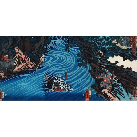 Gentoku Uma o Odorashite Tankei o Koeru zu Black Modern Wood Framed Art Print by Kuniyoshi, Utagawa