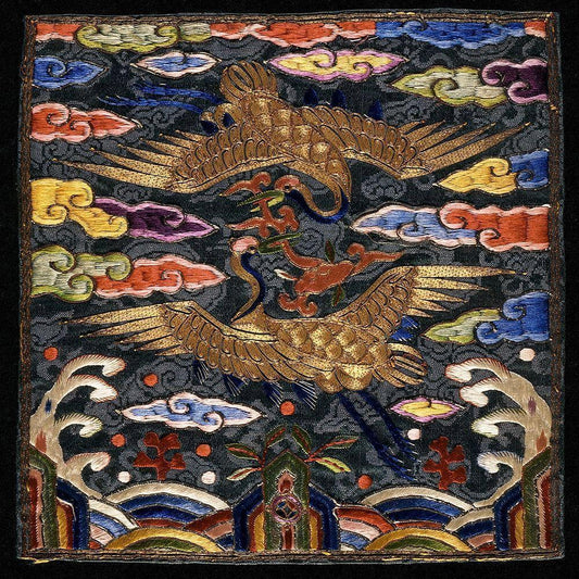 Pair of Badges (Hyungbae) of the Upper Civil Rank with Two Cranes Black Modern Wood Framed Art Print by Unknown 20th Century Korean Needleworker