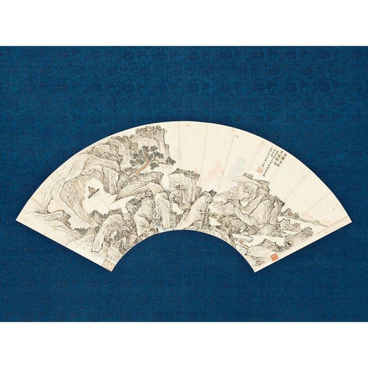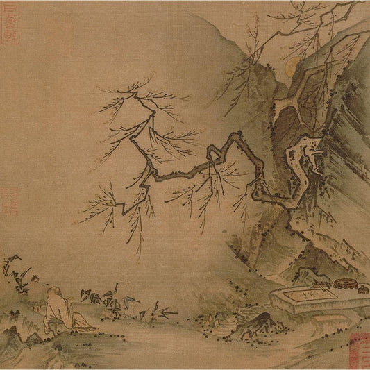 Landscape with Scholar Playing a Lute (Qin) Black Modern Wood Framed Art Print by Unknown 19th Century Chinese Painter