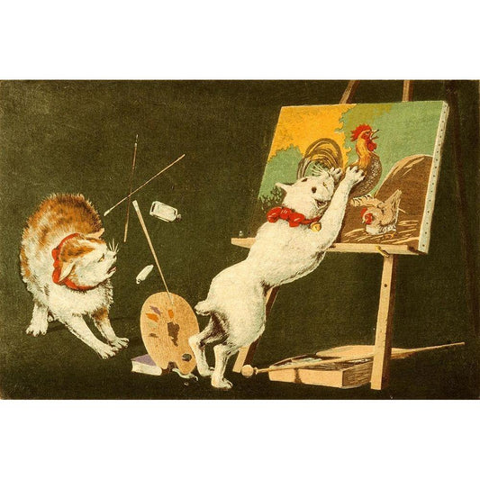 Canvas and Cats Black Modern Wood Framed Art Print by Kiyochika, Kobayashi