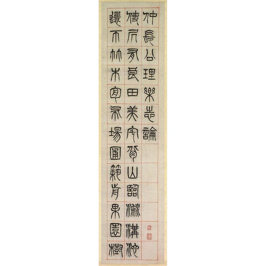 On Happiness Calligraphy in Seal Script Style Scroll Black Modern Wood Framed Art Print by Yisun, Yang