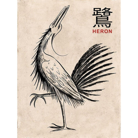 The Heron Black Modern Wood Framed Art Print by Rogan, Mark