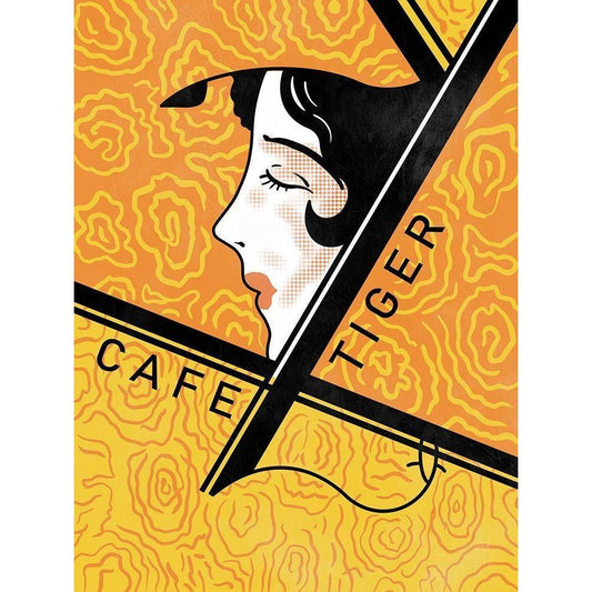 Cafe Tiger Black Modern Wood Framed Art Print by Rogan, Mark