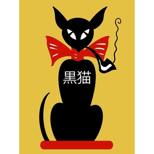 Smoking Black Cat Black Modern Wood Framed Art Print by Rogan, Mark