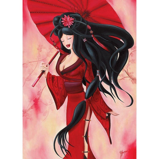 La femme au dragon Black Modern Wood Framed Art Print by Aubert, Sylvie