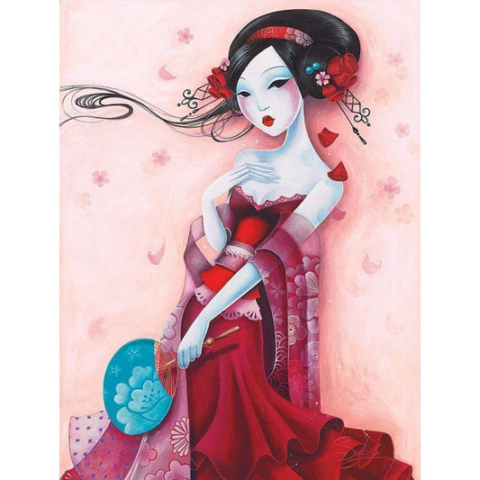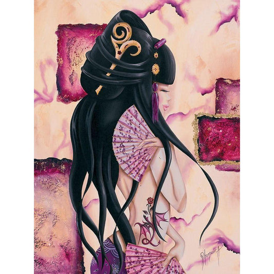 Uchiwa Black Modern Wood Framed Art Print by Sybile
