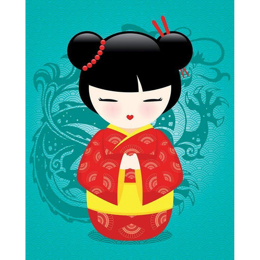 Kokeshis Popcolor I Black Modern Wood Framed Art Print by BRAUN Studio