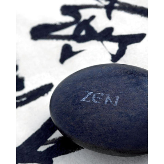 Galet Zen sur Calligraphie Black Modern Wood Framed Art Print by Beyler, Catherine