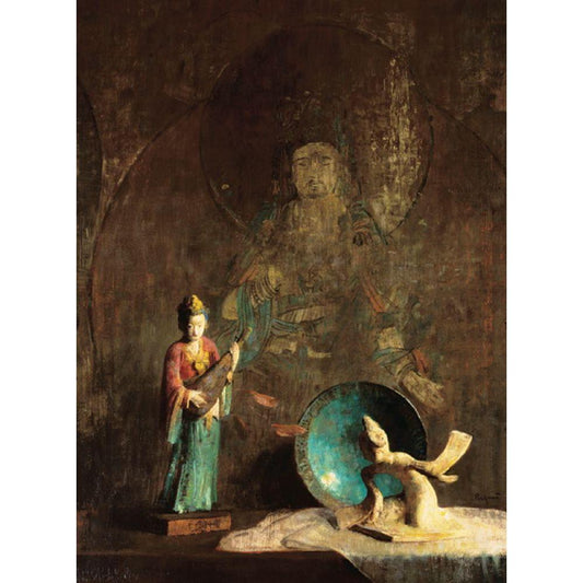 Oriental Figurine Black Modern Wood Framed Art Print by Unknown