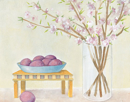 Plums And Vase Black Modern Wood Framed Art Print by Unknown