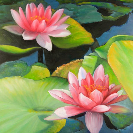 Water Lilies and Lotus Flowers Black Modern Wood Framed Art Print by Atelier B Art Studio