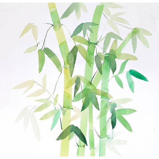 WATERCOLOR BAMBOO WITH LEAVES Black Modern Wood Framed Art Print by Atelier B Art Studio