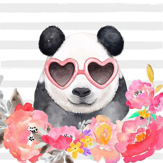 PANDA WITH HEART-SHAPED GLASSES Black Modern Wood Framed Art Print by Atelier B Art Studio