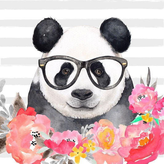 PANDA WITH GLASSES Black Modern Wood Framed Art Print by Atelier B Art Studio