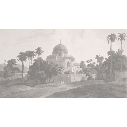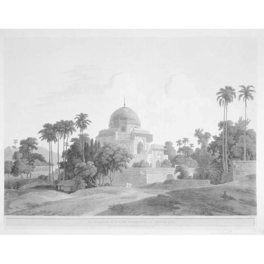 Mausoleum at Chunar Gur, Sepia Black Modern Wood Framed Art Print by Daniells, Thomas and Wm