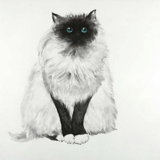 Blue Eyes Fluffy Siamese Cat Black Modern Wood Framed Art Print by Atelier B Art Studio