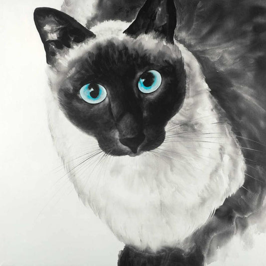 Blue Eyes Siamese Cat Black Modern Wood Framed Art Print by Atelier B Art Studio