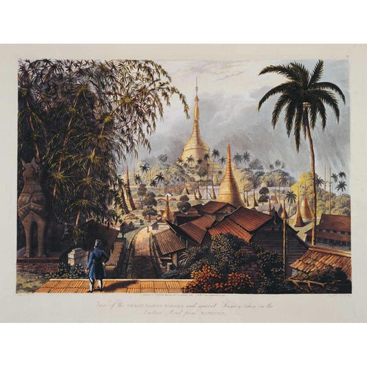 Rangoon, Great Dagon Pagoda Black Modern Wood Framed Art Print by Moore,Ltnt Joseph