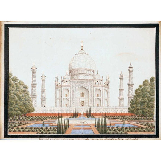 The Taj Mahal with Garden Black Modern Wood Framed Art Print by Anon, Mughal 1813