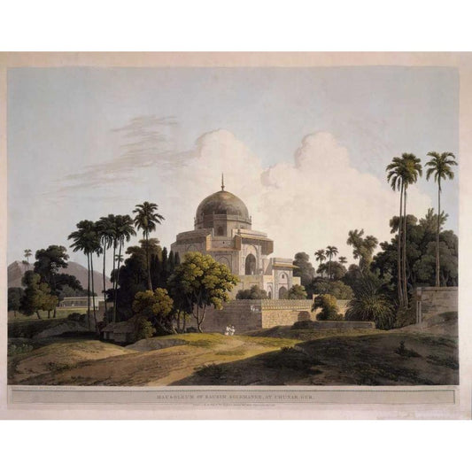 Mausoleum at Chunar Gar Black Modern Wood Framed Art Print by Daniells,Thomas and Wm