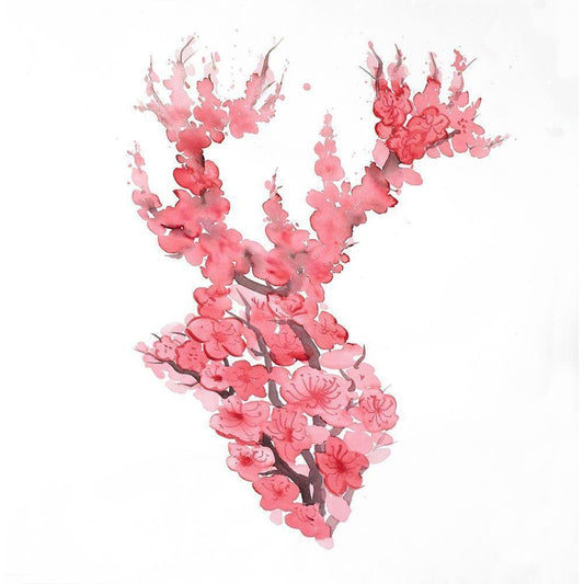 DEER IN CHERRY BLOSSOMS Black Modern Wood Framed Art Print by Atelier B Art Studio