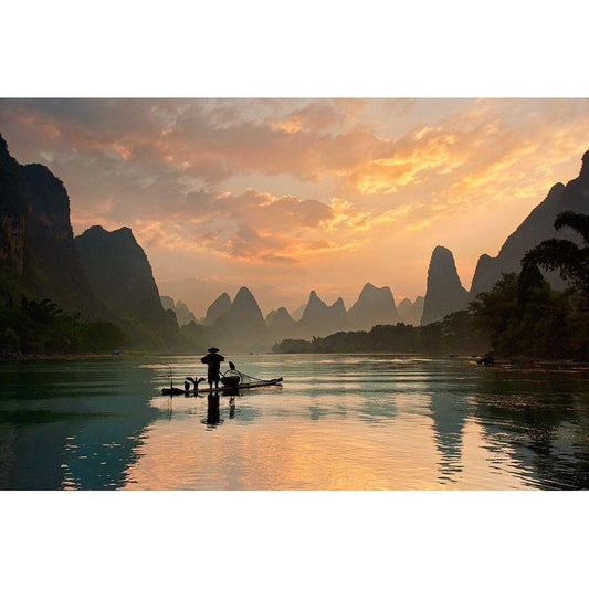 Golden Li River Black Modern Wood Framed Art Print by Zhang, Yan
