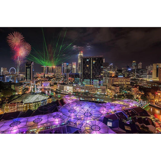 Singapore Clark Quay Night View Black Modern Wood Framed Art Print by Xie, Zexsen