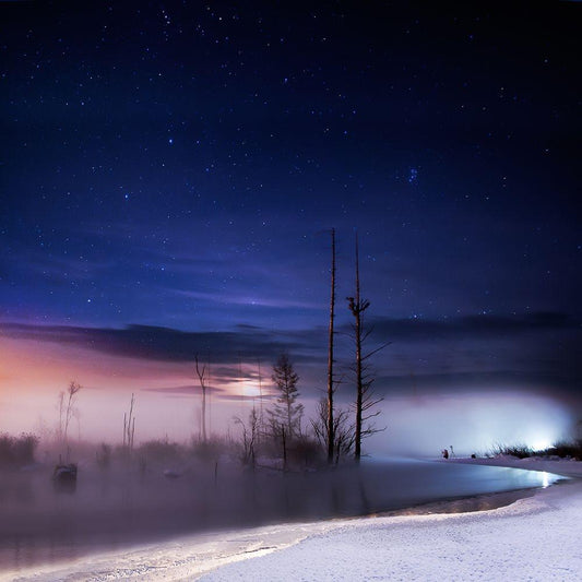 A Winter Night Black Modern Wood Framed Art Print by Yang, Shu-Guang