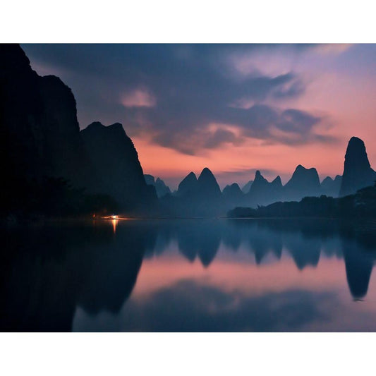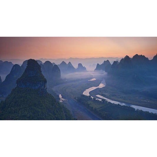 The Dawn Of Li River Black Modern Wood Framed Art Print by Zhang, Yan