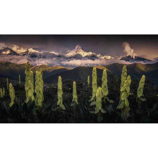 Rheum Nobile Hook At The Foot Of Snow Mountain Black Modern Wood Framed Art Print by Cui, Yuan