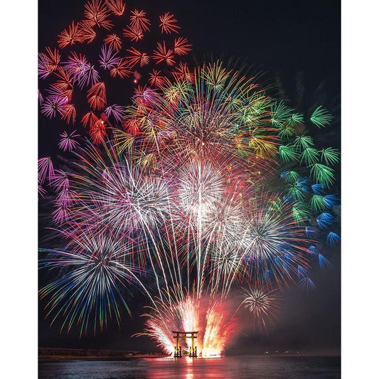 TorII Gate On The Water And VIVid Flowers Black Modern Wood Framed Art Print by Matsubara, Hiroki