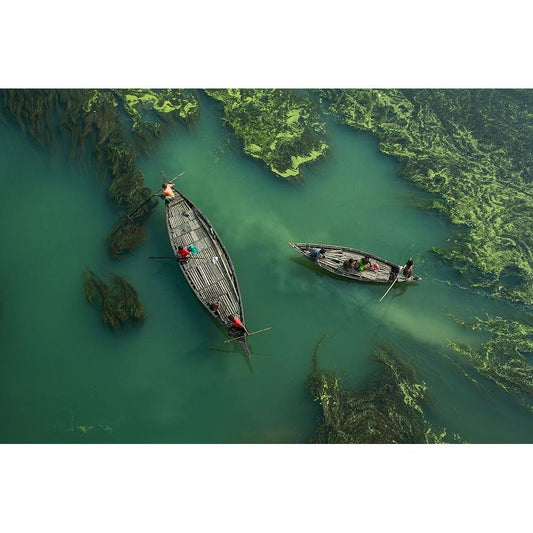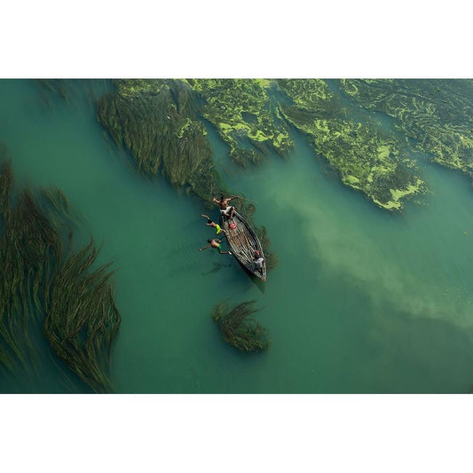 Crossing The Algae RIVer Black Modern Wood Framed Art Print by Amdad Hossain, Muhammad