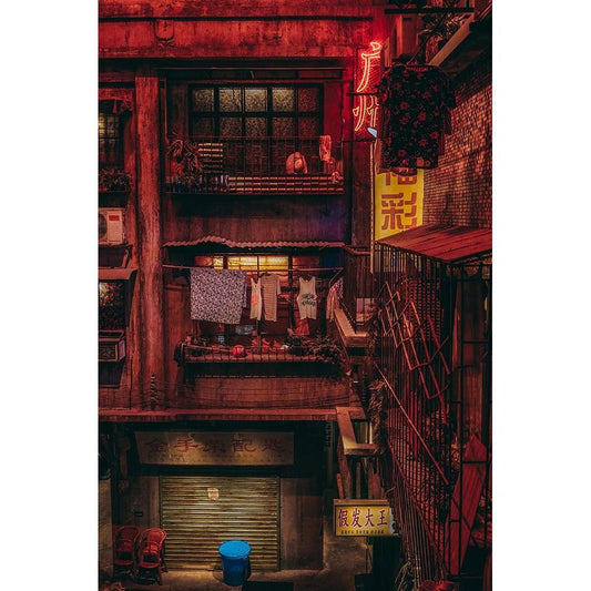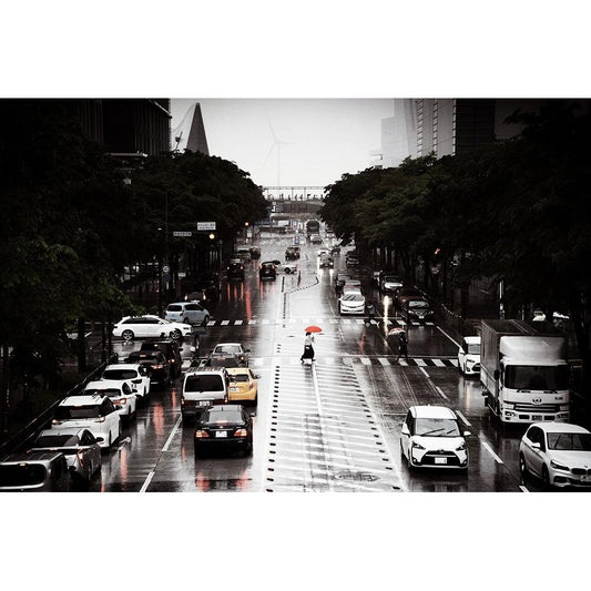 Rainy Day-Yokohama Black Modern Wood Framed Art Print by Kiri, Reiko