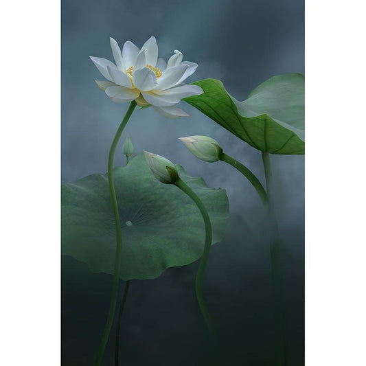 Lotus Black Modern Wood Framed Art Print by Ye, Ningyun