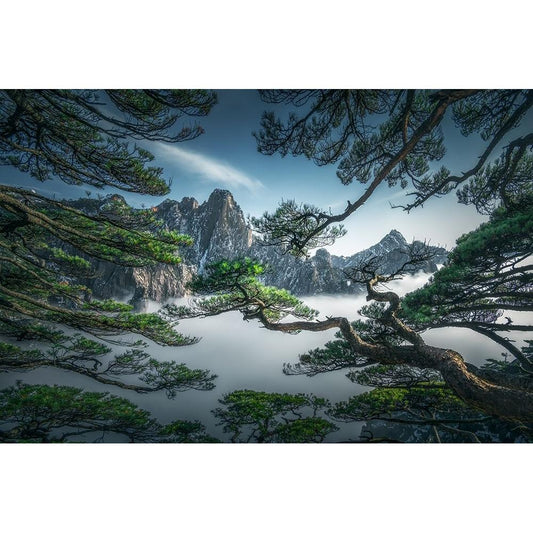 Strange Pine Tree In Yellow Mountain Black Modern Wood Framed Art Print by Ye, Ningyun