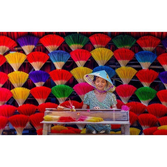 Making Incense Black Modern Wood Framed Art Print by Tan Tuan, Nguyen