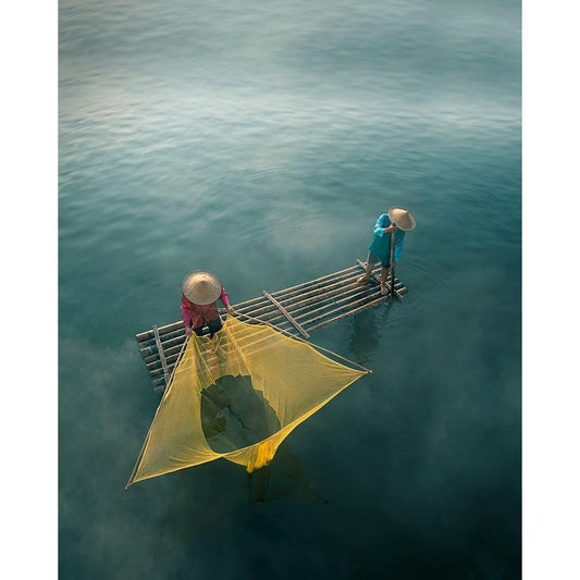 fisherman Black Modern Wood Framed Art Print by Octavandy