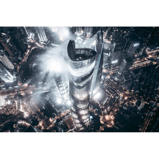 Shanghai Sunrise Black Modern Wood Framed Art Print by Tan, Jasper