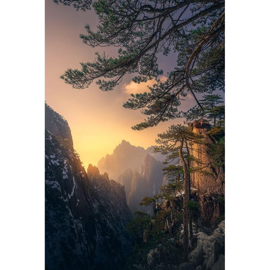 Yellow Mountain Sunset Black Modern Wood Framed Art Print by Ye, Ningyun