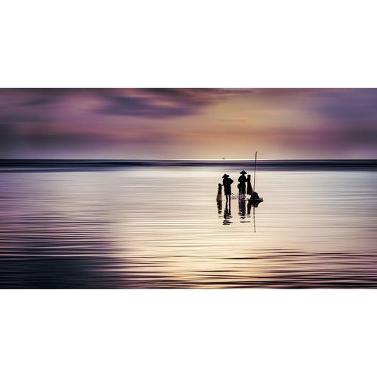 The Fishermen Black Modern Wood Framed Art Print by Herlihy, Diarmuid