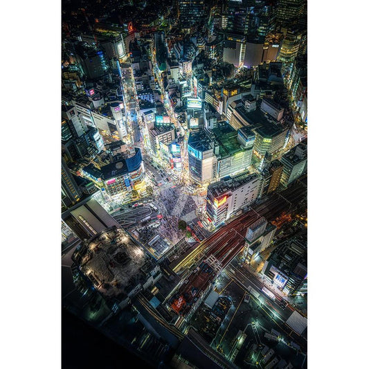 Tokyo Layers Black Modern Wood Framed Art Print by Makoto, Sasaki