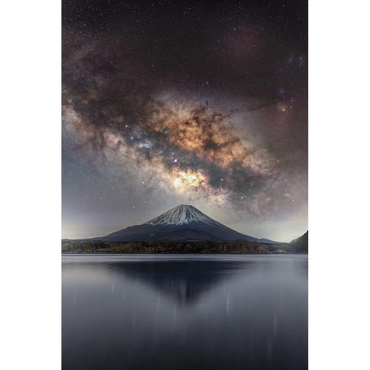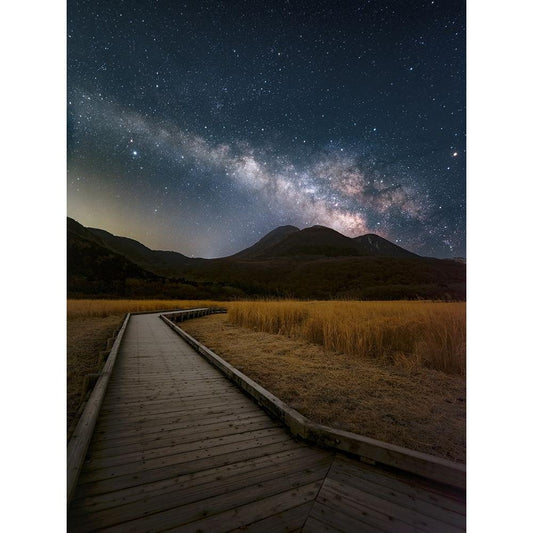 Milky Way shining in the sky of Kuju Mountain Range Black Modern Wood Framed Art Print by Awakari
