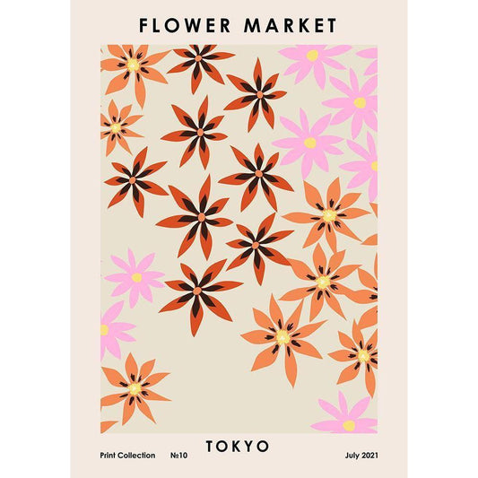 Flower Market Tokyo Black Modern Wood Framed Art Print by NKTN